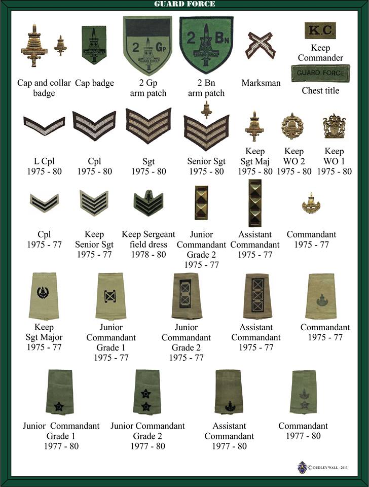 Rhodesia Guard Force chest title, two pin prick size rust spots, see photo