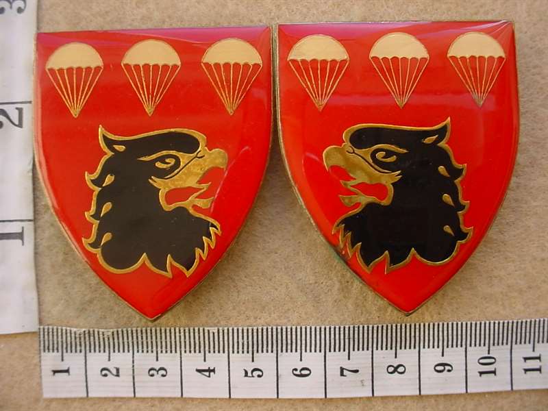 South Africa 3 Parachute Battalion arm flashes, 1st issue, red, facing pair, originals, not to be confused with the fakes being sold on a South African internet auction site, only worn for a short period before they changed to the maroon background (3 Para Bn / paratrooper / Parabat)