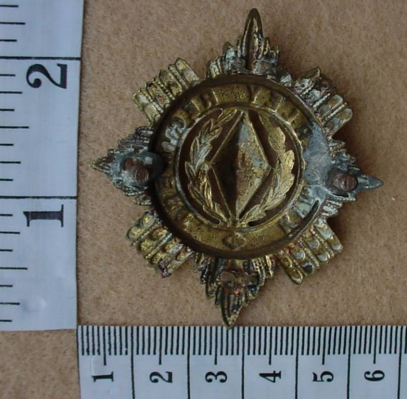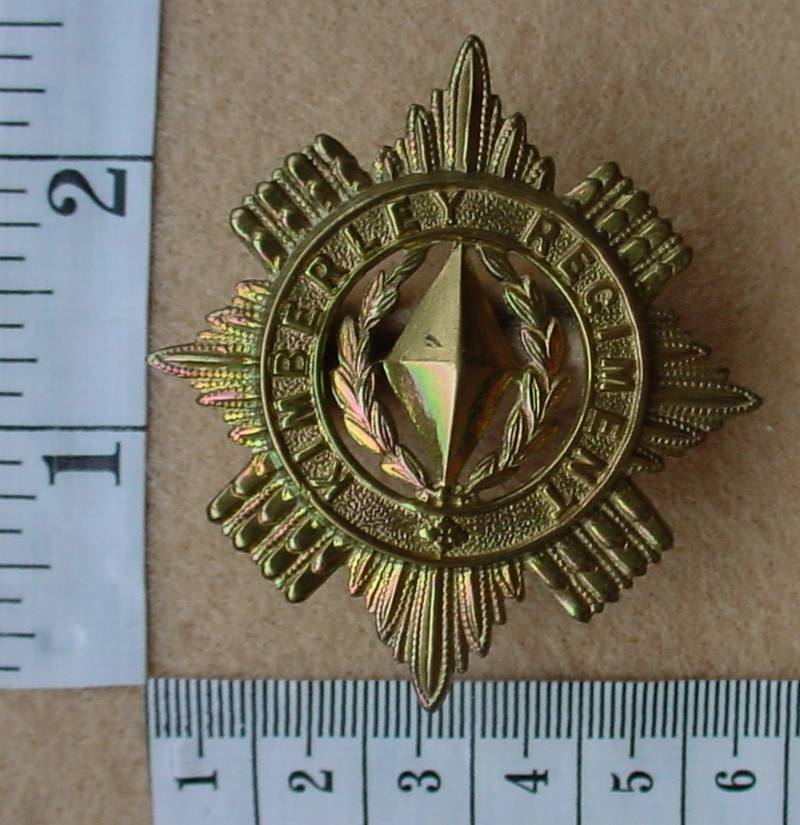 Kimberley Regiment cap badge, lugs removed and bolts fitted at 3 and 9, otherwise VGC