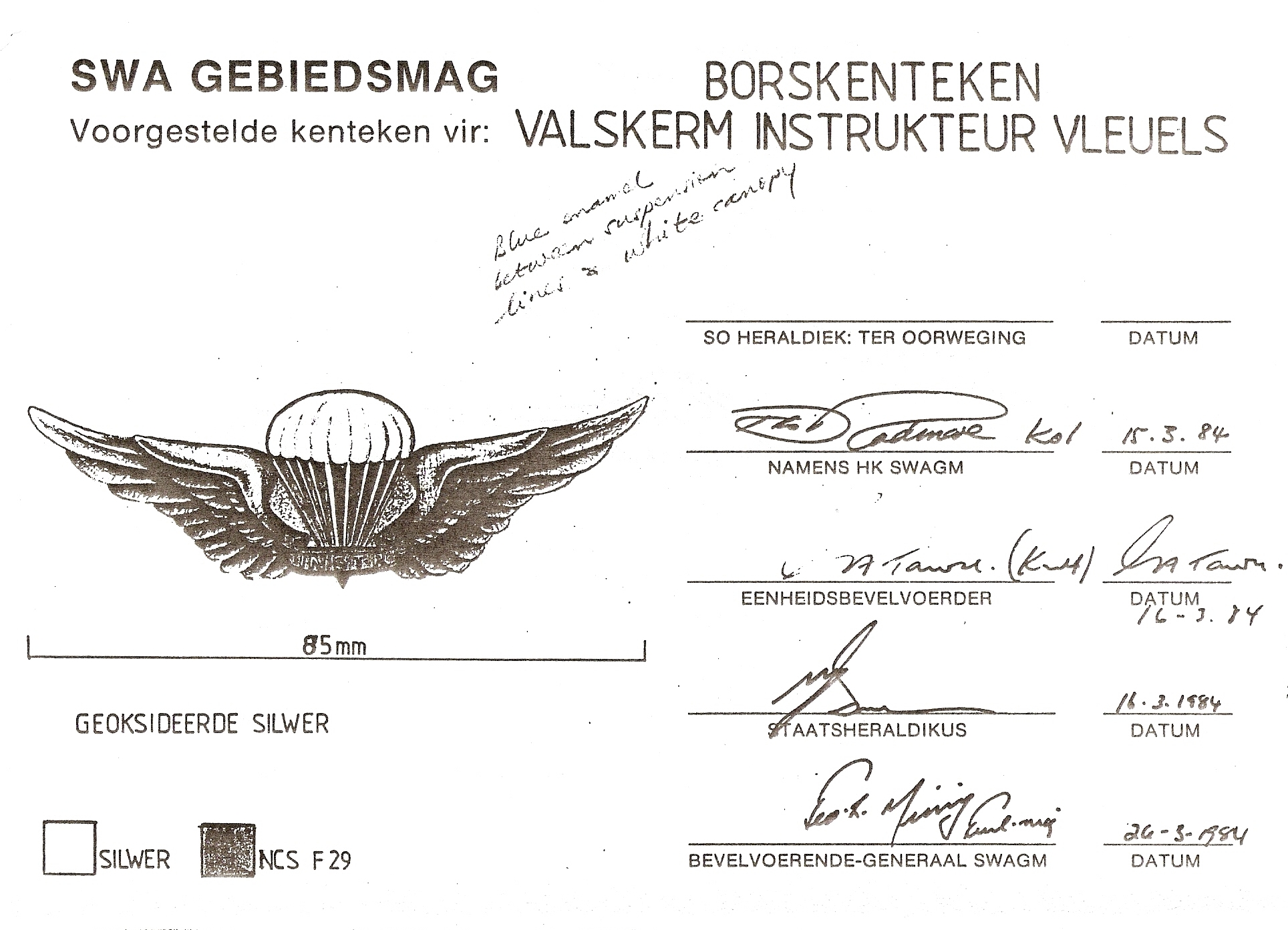 5197-1 South West African Army Free Fall Parachute Instructor wings (C798)