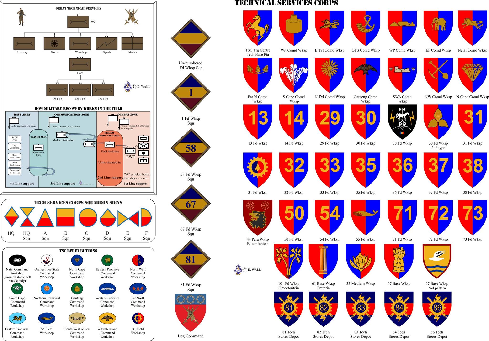 South African Technical Service Corps Training Centre arm flashes, 3rd issue, gold type