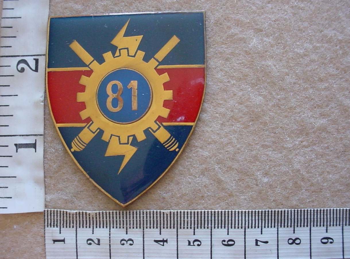 South African Army 81 Technical Stores Depot arm flash, pins cut off (Technical Service Corps)