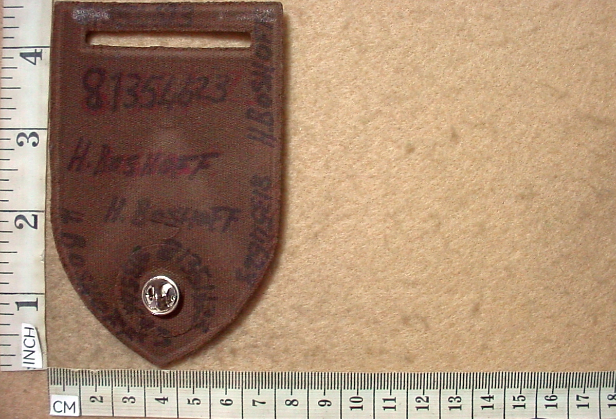 91 Ammunition Depot arm flash, Logistics Command balkie, 2nd pattern, name and force number written on the back