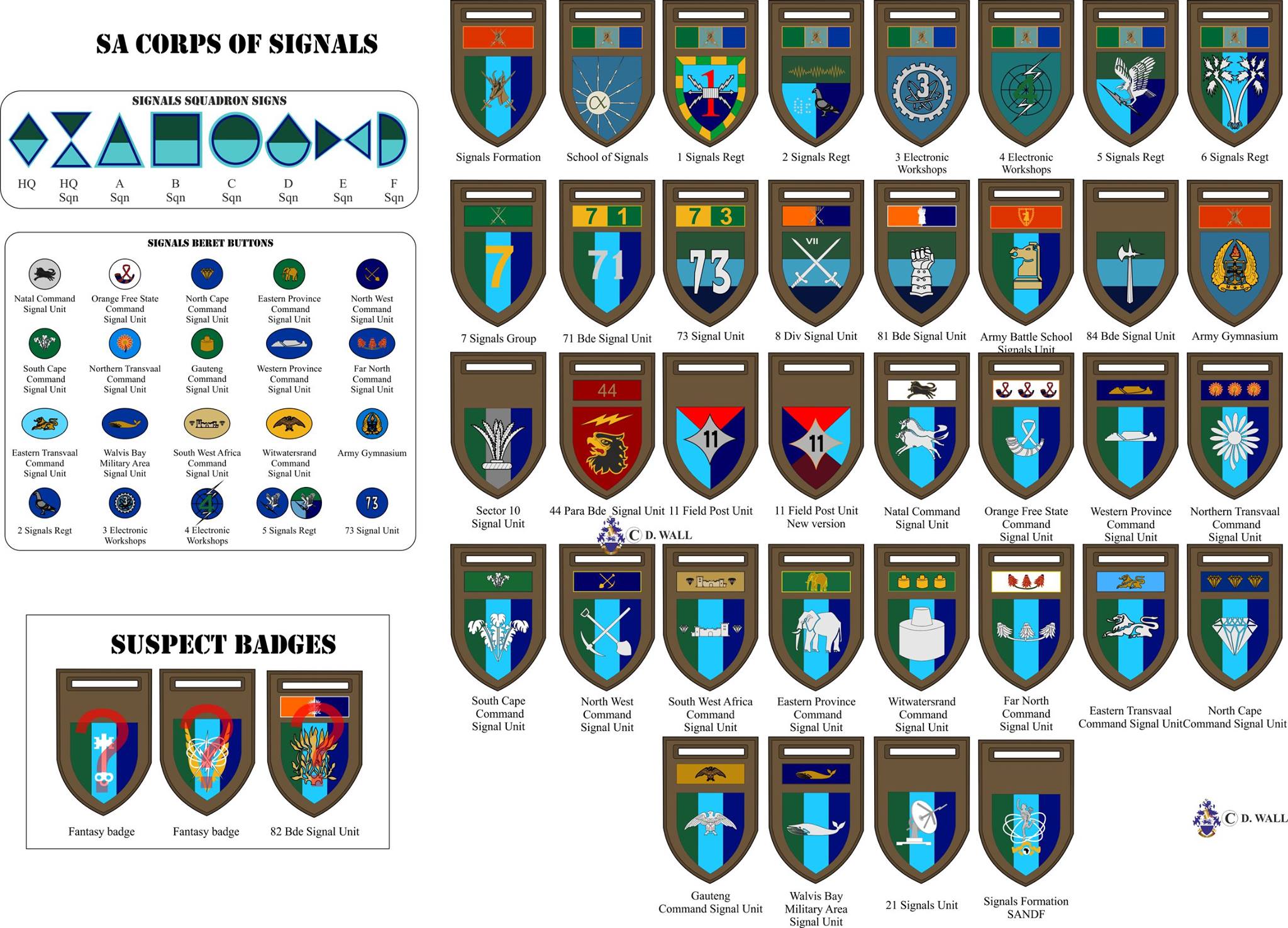 South African Defence Force Army Witwatersrand Command Signal Unit arm flash with Wits Command balkie above, name TONY GONCALVES written on the back