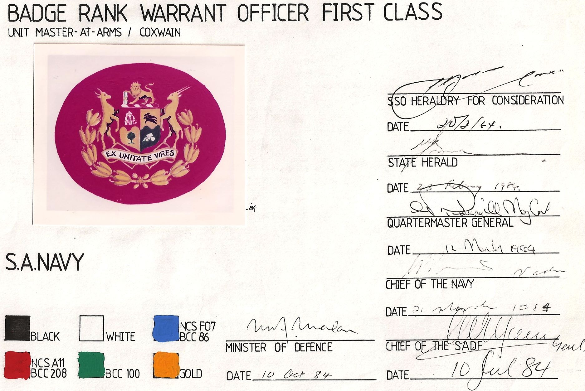 South African Army Regimental Sergeant Major rank badge, RSM, also worn by the South African Navy Master at Arms (DW1 75 7)