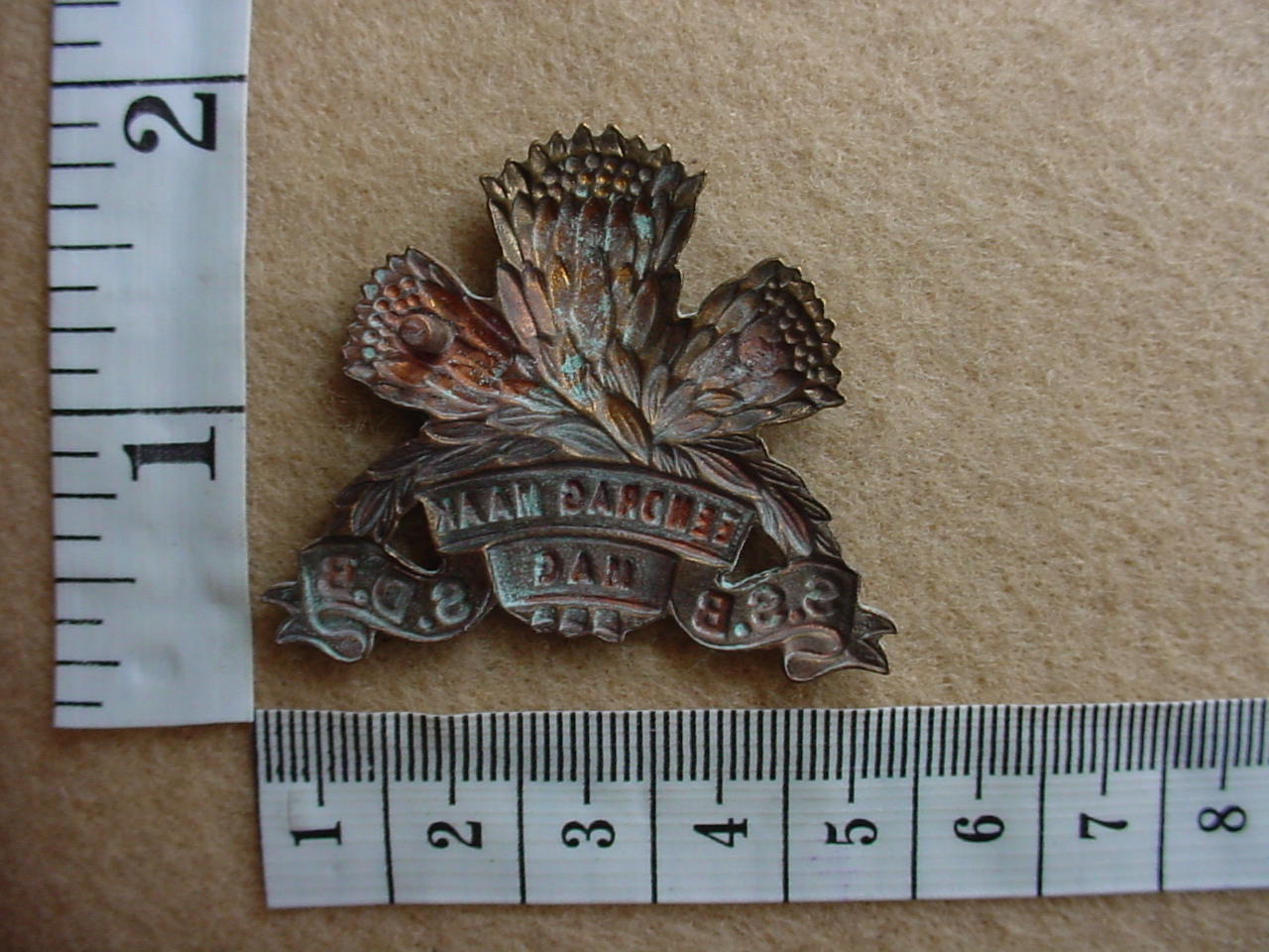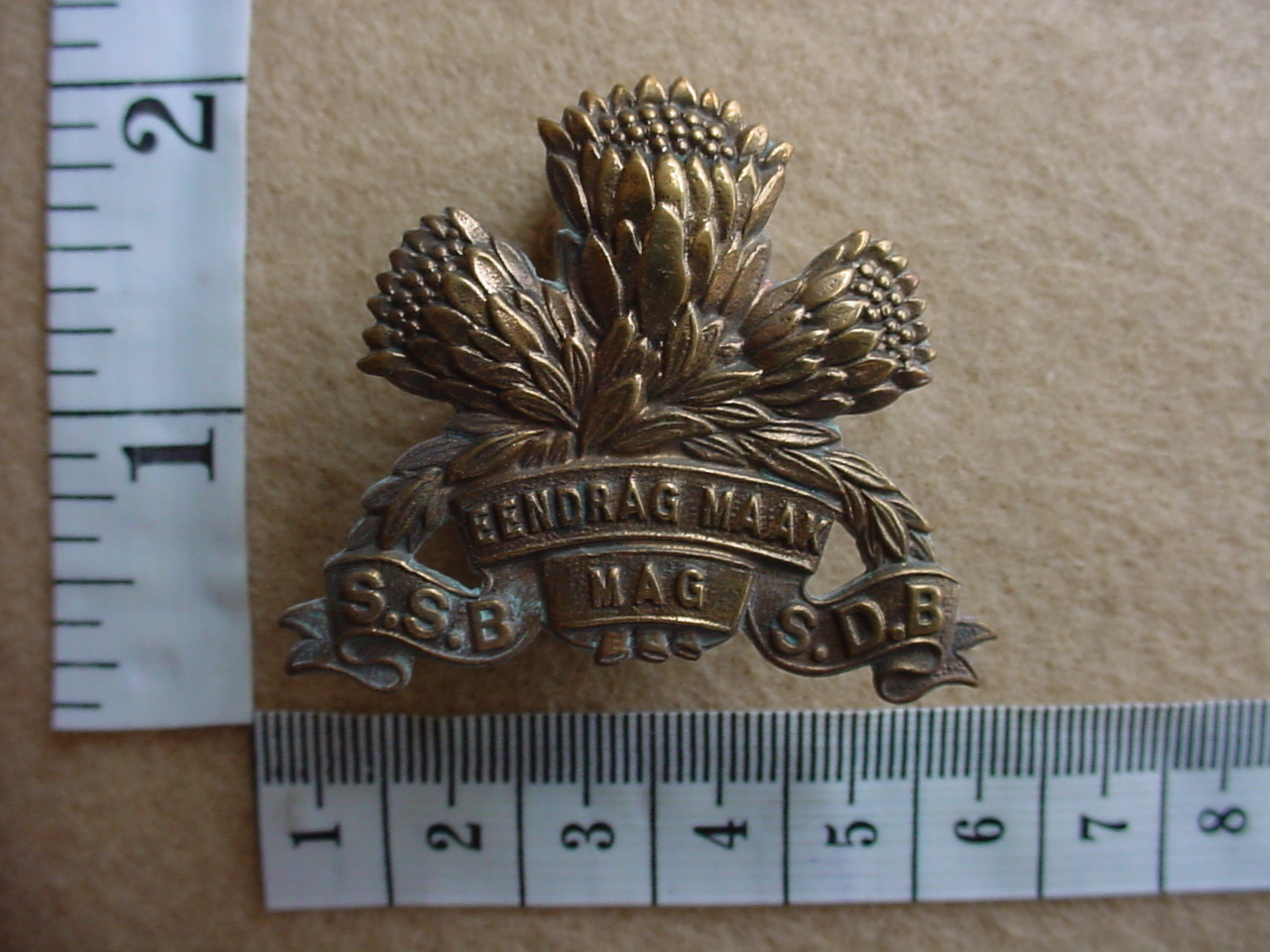 South African Special Service Battalion (Armoured Cars and Tank Corps) cap badge, one bolt broken off, otherwise VGC
