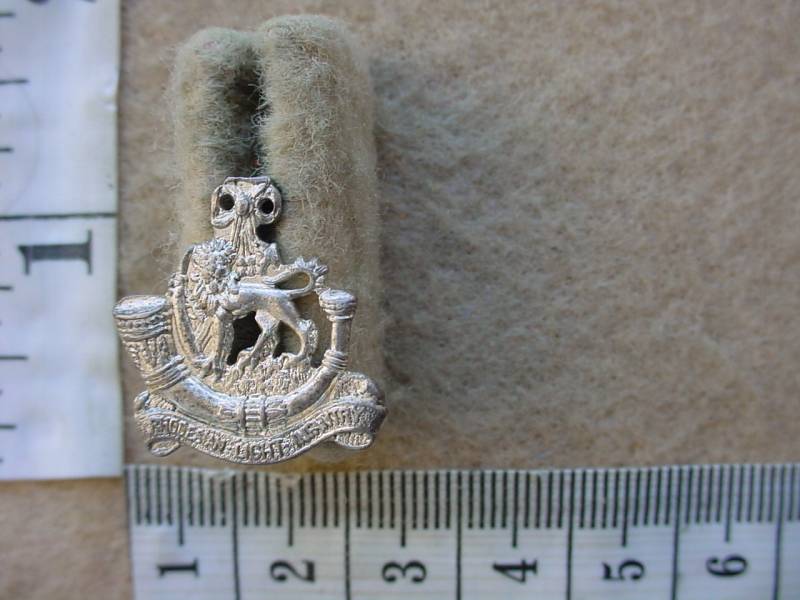 Rhodesian Light Infantry Officers mess dress collar badge, hallmarked REUTELER SILVER SALISBURY (RLI)