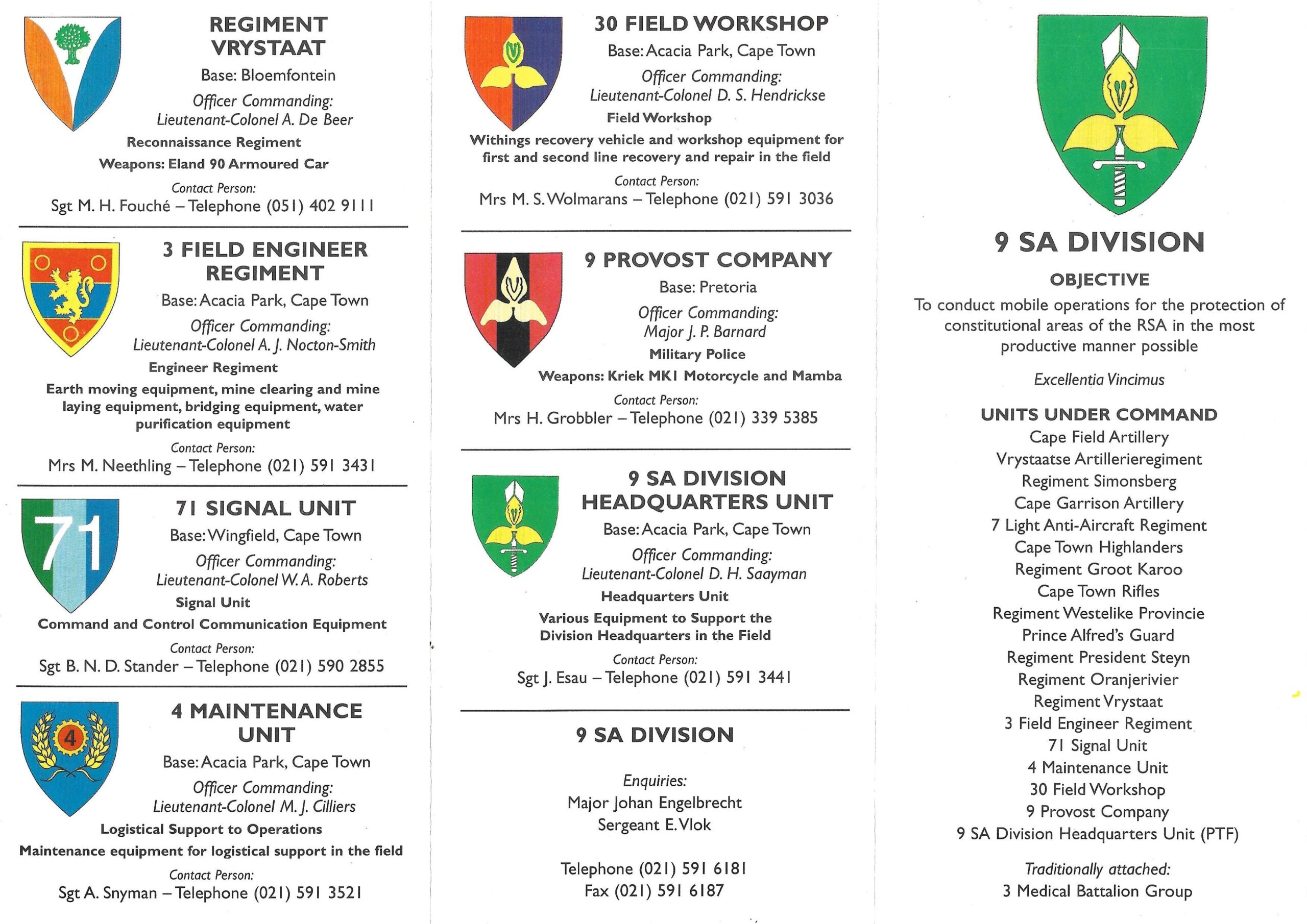 7604 : 9 Provost Company arm flash, 9 South African Division Command bar