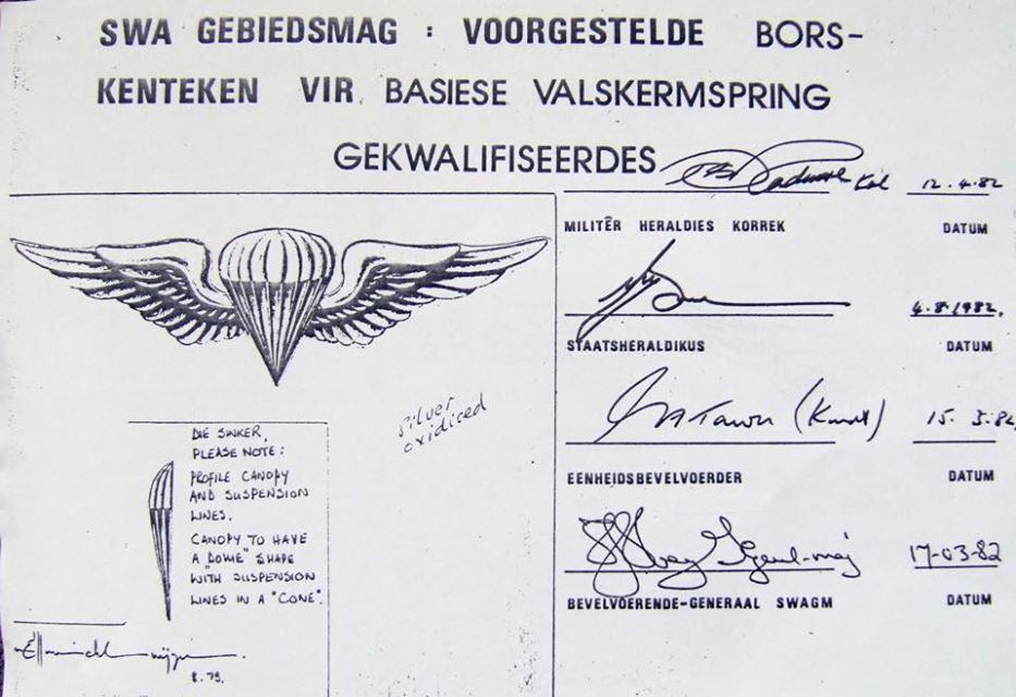 South West Africa Army Basic Paractrooper wings (SWA Parachutist)