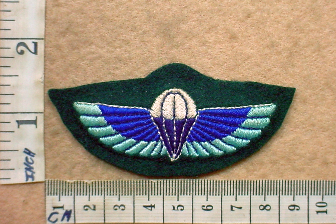 Rhodesian Special Air Service paratrooper wings, Greens Dress, padding and backing material removed, as worn on the Green jearsey, variation from my personal collection (Rhodesian SAS C Sqn)